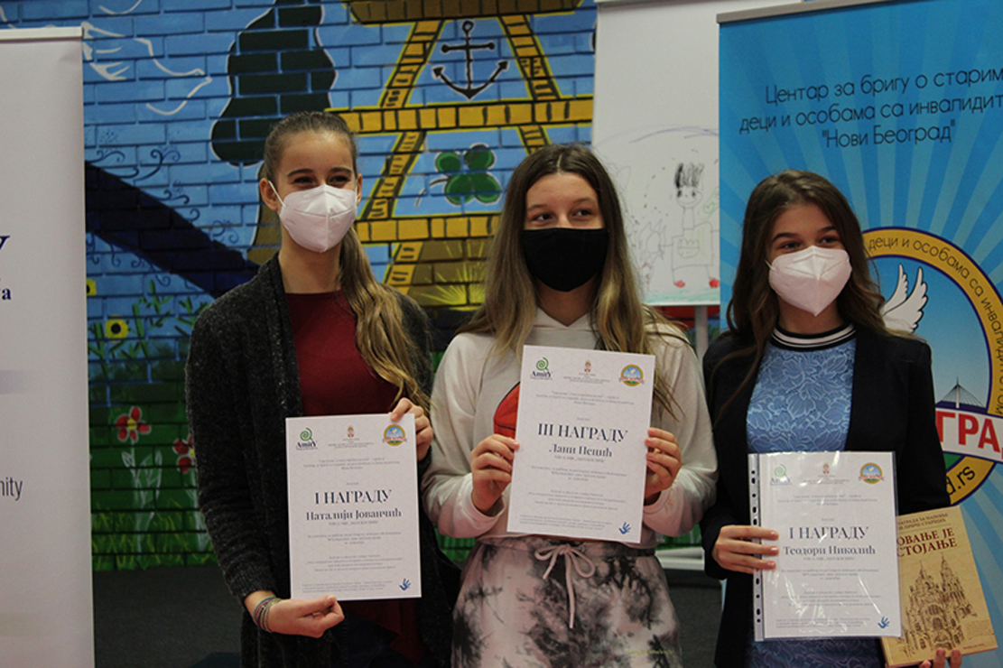 Amity i Centar za brigu o starima, deci i osobama sa invaliditetom Novi Beograd su realizovali nagradni konkurs za učenike VIII razreda novobeogradskih osnovnih škola, za najbolju video poruku, a povodom obeležavanja Međunarodnog dana ljudskih prava, 10. decembra.